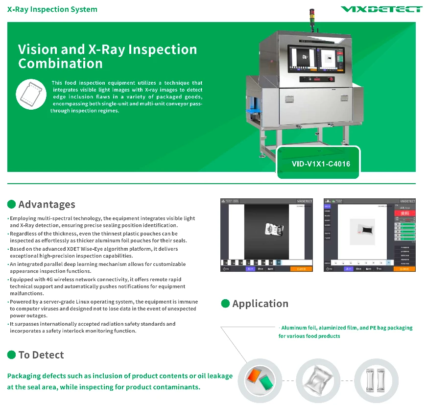 基於X射線、可見光、近紅外線等光譜的物理特徵,對產品表面污漬及封夾、內部缺陷及異物、新鮮度等缺陷進行識別,有效解決各類具有挑戰性的食品生產品質問題。