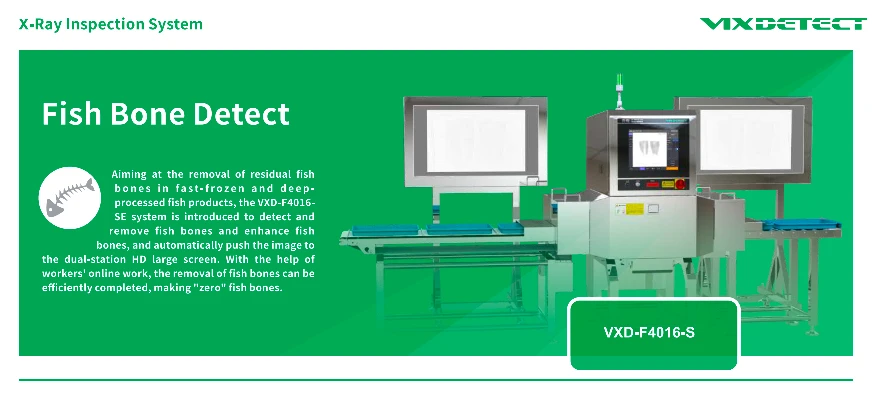 對魚製品中的魚刺進行成像,並在單或雙高清大螢幕上增強顯示,操作員可以有效地去除魚刺。